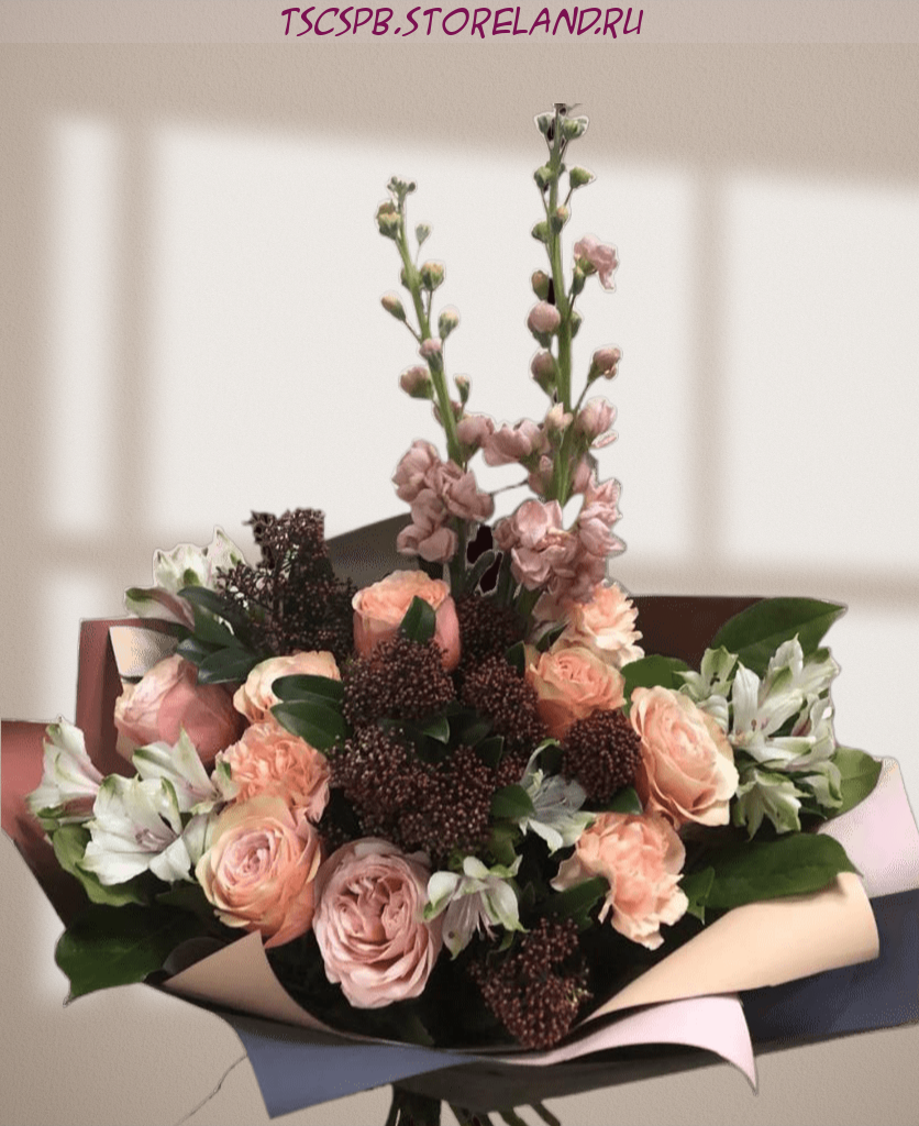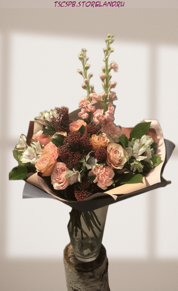 Букет «Арфа» — авторская цветочная композиция с розами Кахалла, альстромерией и матиоллой. Свежие цветы и быстрая доставка по Санкт‑Петербургу. Идеально для подарка и особых событий.