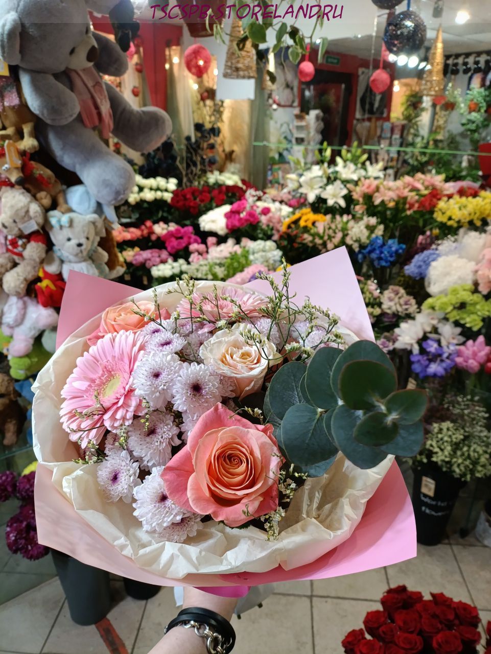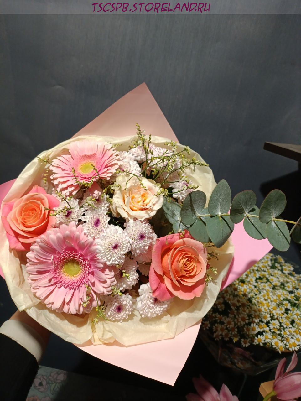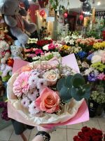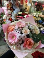 Букет «Комплемент» — выразительная композиция из роз, гербер и хризантем в авторской упаковке. Стильный подарок, который передаёт эмоции и радует свежестью каждый день.