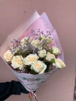 Букет "Марципан" – это утонченный подарок, выполненный из кустовых роз "Солинеро" и гипсофилы. Его нежность и элегантность подчеркнут любой праздник. Закажите сейчас и удивите своих близких!