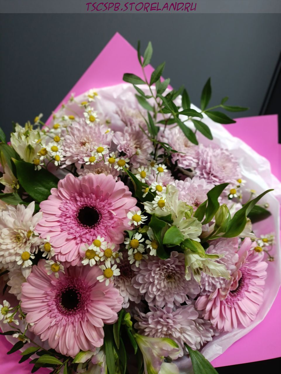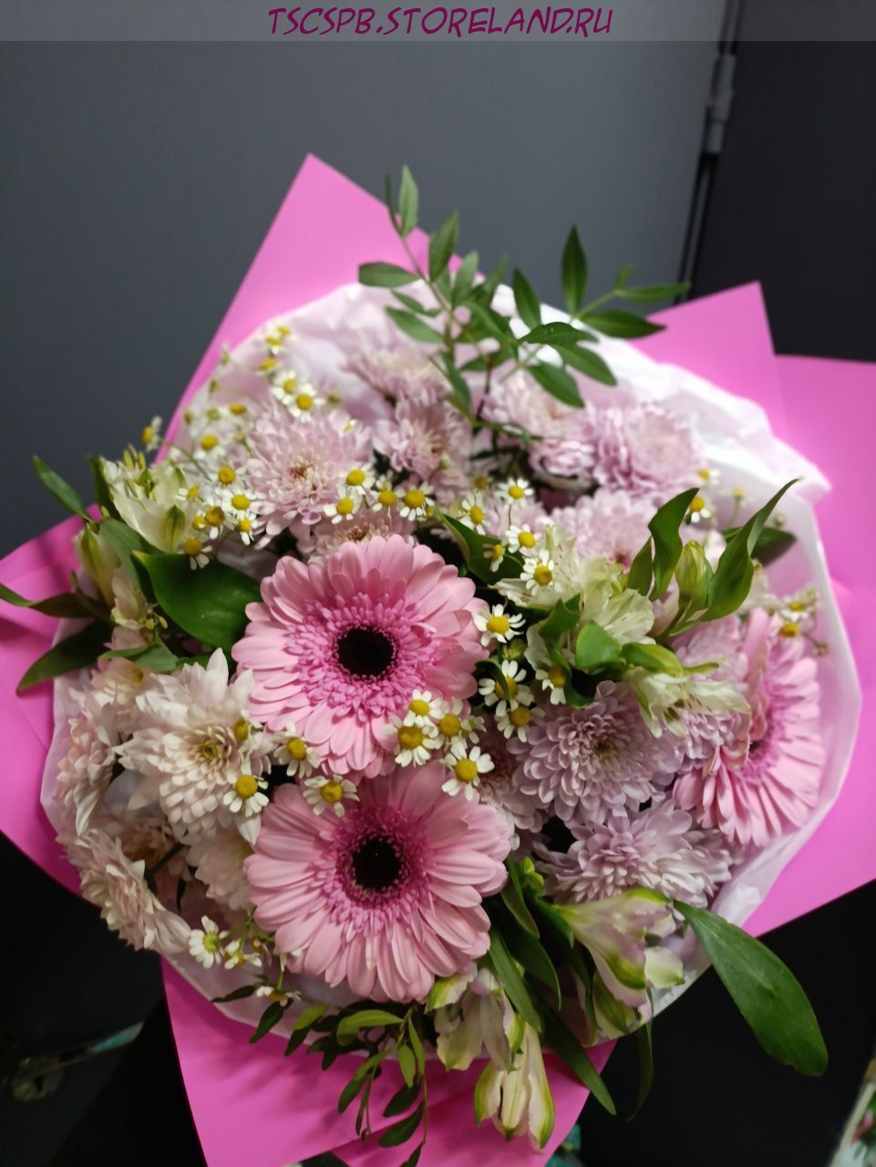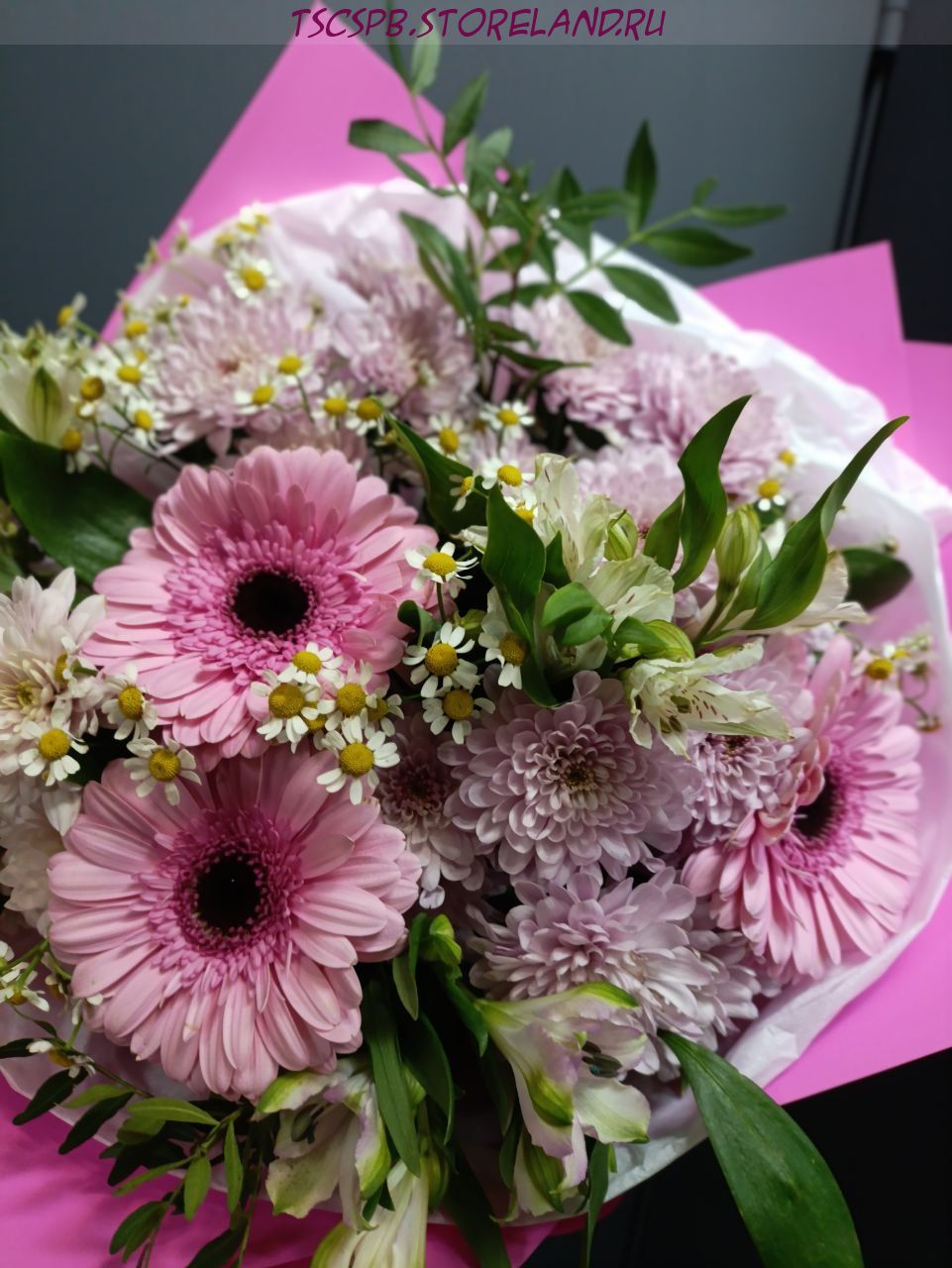 Букет «Тройка Чаш» — элегантная цветочная композиция с герберами, танацетумом, альстромерией и кустовой хризантемой. Универсальный подарок для любого повода. Авторская упаковка, свежие цветы и быстрая доставка по Санкт‑Петербургу.