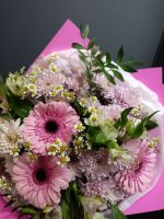 Букет «Тройка Чаш» — маленькое торжество в руках: три чаши радости, тепла и живого общения. Идеальный подарок для тех, кто ценит искренние эмоции и стильную подачу. Состав: - Гербера — 3 шт (светлая энергия и праздник), - Танацетум — 3 шт (нежная текстура и характер), - Альстромерия — 3 шт (символ дружбы и верности), - Хризантема кустовая — 4 шт (густота, объем и долговечность), - Зеленые акценты и авторская упаковка — готово к вручению. Уникальные особенности и преимущества: - Сбалансированная гамма формы и цвета: три крупных акцента (герберы и альстромерии) и пушистая хризантема создают эффект «живой композиции», которая сохраняет свежесть и настроение дольше. - Авторская упаковка: элегантно, стильно и готово к подарку — экономит ваше время и делает вручение максимально эффектным. - Универсальность: идеален для дня рождения, юбилея, семейного торжества или как способ сказать «я думаю о тебе» без лишних слов. - Долговечность: отборные цветы и правильная декоративная зелень — букет будет радовать несколько дней при простом уходе. Как решает проблемы: - Нет времени выбирать подарок? Готовая композиция в авторской упаковке — решение «в один шаг». - Нужен универсальный букет, который не навязчив и уместен в любой ситуации? «Тройка Чаш» сочетает праздник и такт. - Хотите выразить эмоции ярко и стильно? Три чаши символизируют радость, общение и семейное тепло — идеальное послание в цветах. Эмоциональный посыл: Разве не приятно видеть улыбку близкого человека, когда он получает букет, который словно говорит: «Этот день — для нас»? Три чаши радости в каждой композиции — и ваш подарок запомнится надолго. Закажите Букет «Тройка Чаш» — подарите праздник, который чувствуется в каждом цветке.